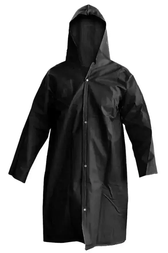 Capa de Segurança confeccionada em PVC com forro de poliéster, com mangas, capuz conjugado, fechamento frontal por meio de botões, fechamento das costuras através de solda eletrôniCA