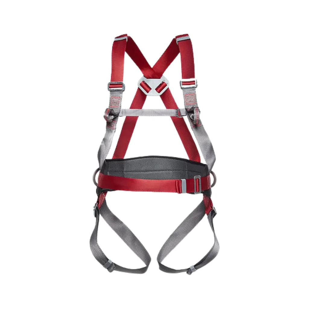 Cinturão de Segurança tipo paraquedista abdominal com 04 pontos de conexão - 05 fivelas duplas em aço para ajuste nas pernas, cintura e suspensório; - 01 meia argola em aço com ponto de conexão dorsal; - 02 meia argolas em aço na cintura utilizadas para posicionamento; - 02 laços frontais utilizados para conexão peitoral; - Almofada localizada na região lombar; - Confeccionado em material sintético poliéster. - Tamanho: Único - Cor: Cinza e Vermelho Normas