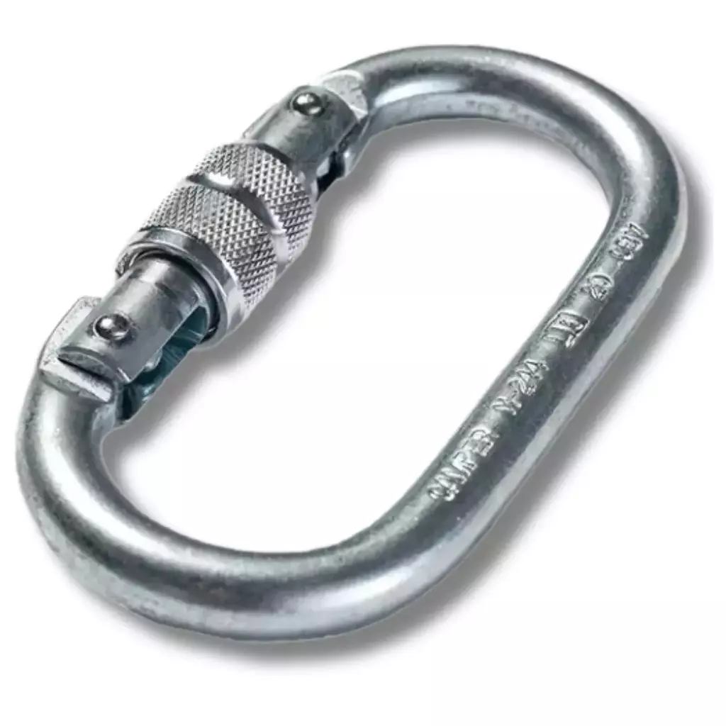 - Conector confeccionado em aço carbono que possui dupla trava de segurança em rosca;